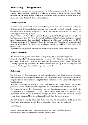 Ansaugleistung des Sauggasmotors erzeugt. Zum Motorstart musste der Motor daher so lange